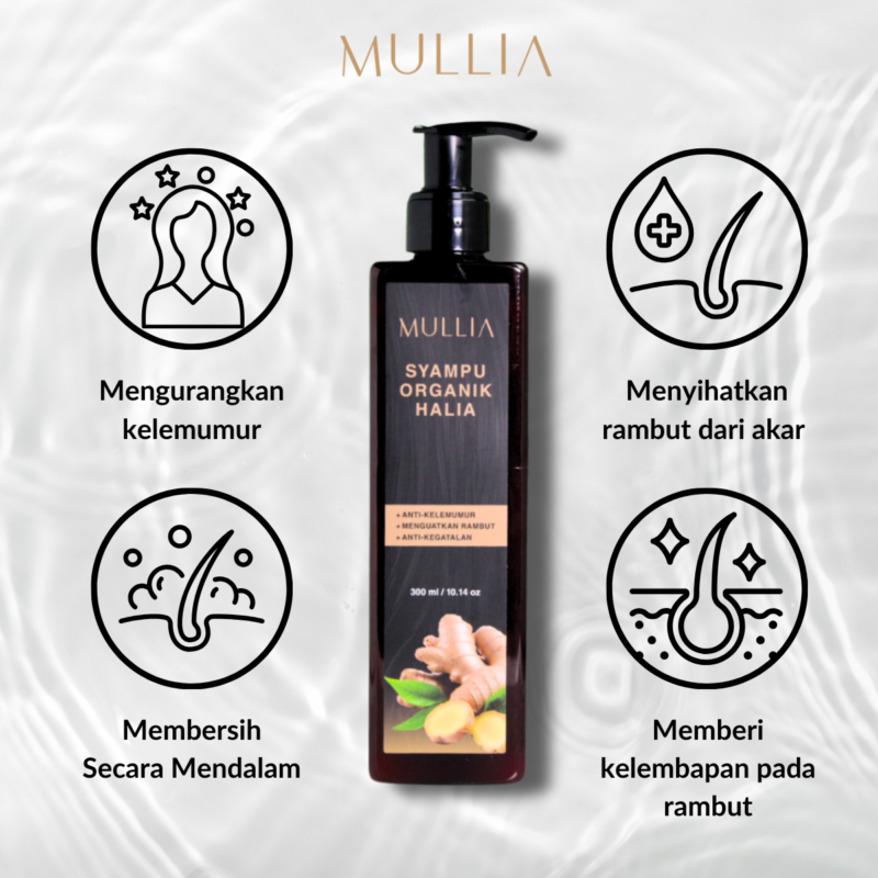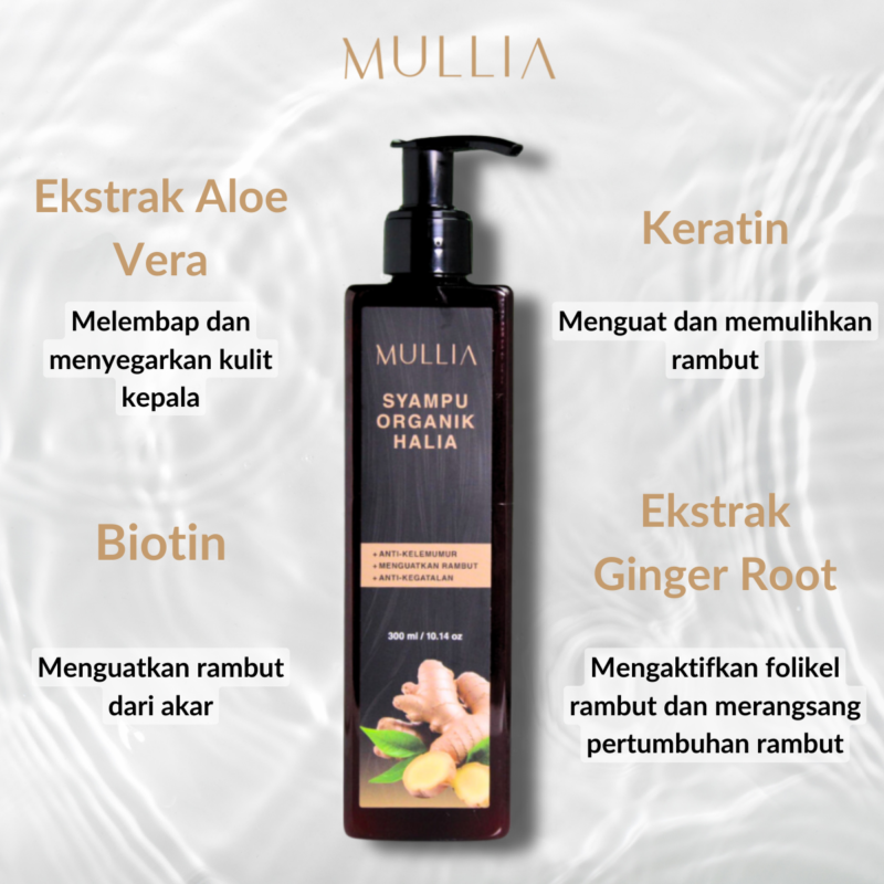 • Syampu Mullia Organic Ginger Intense Hair Activation & Growth Shampoo: Membersih dengan lembut sambil merangsang kulit kepala anda untuk rambut yang lebih sihat dan kuat.